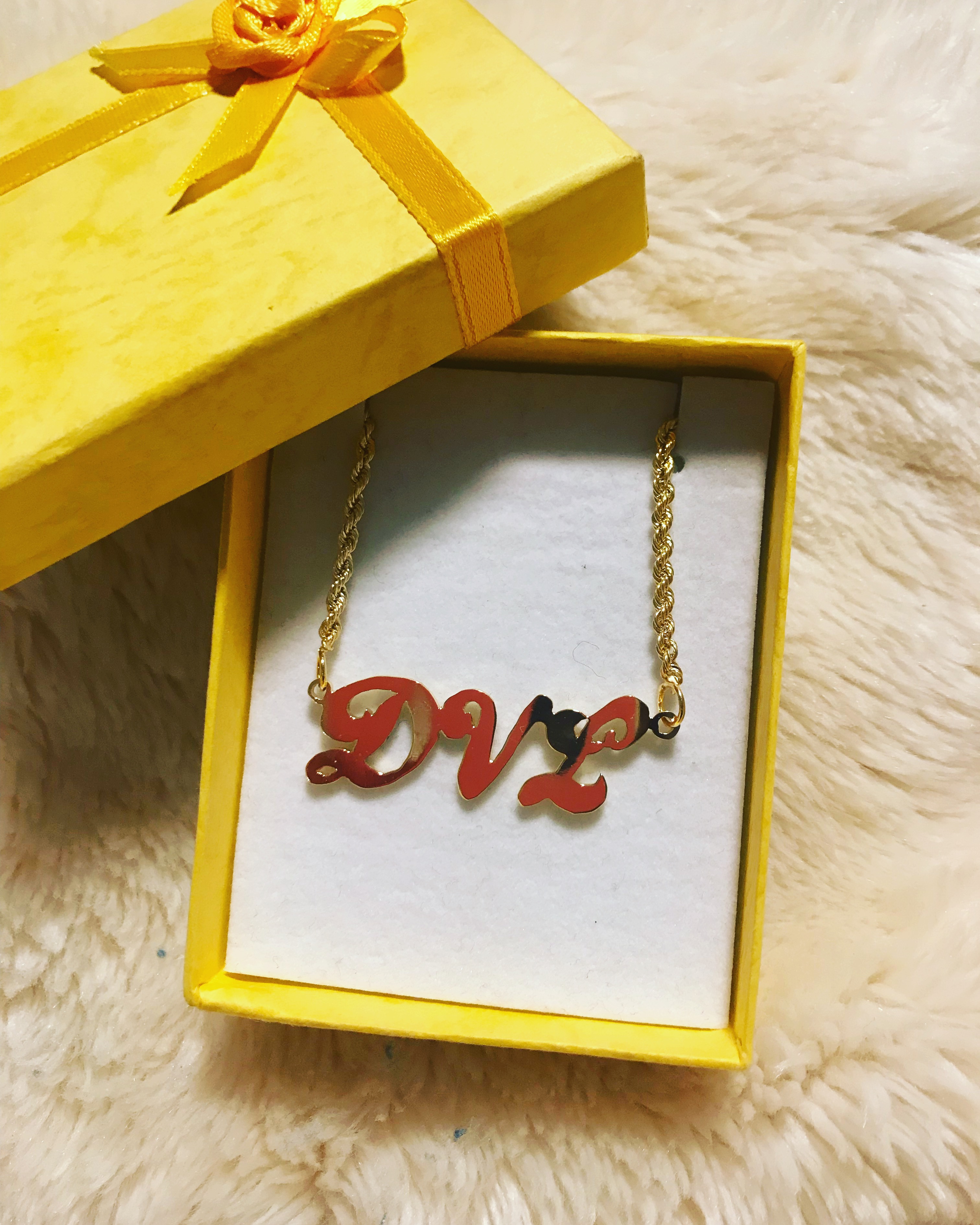 Fine crafted custom Initials, %100 authentic Gold. Comes with %100 authentic gold necklace (10k)