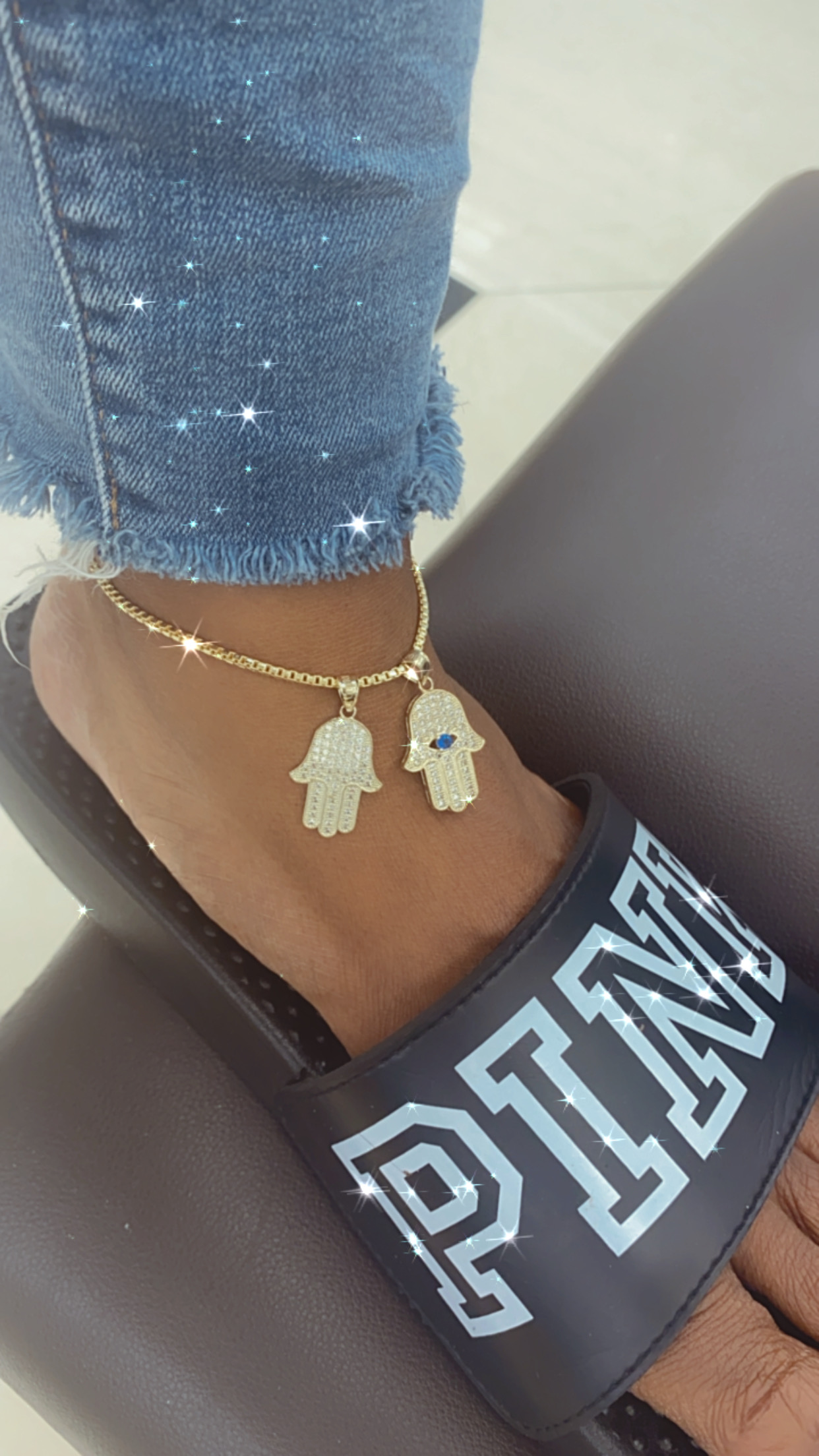 %100 Gold 10kt 10 inch anklet (Anklet link varies) 2 Hamsa charm per anklet (3.3 grams)